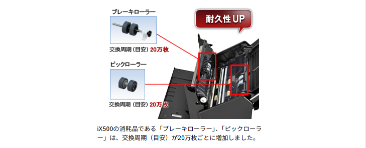 「文具王」いわく、iX500の耐久目安は約20万枚だそうです。つまりこの個体、まだ1.3%しか使っていない計算。