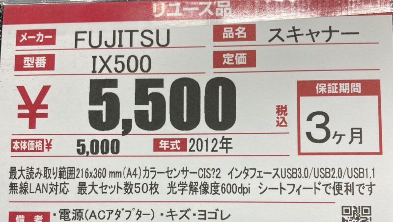 iX500、総スキャン枚数が少ない個体をジャンクで拾えたらかなりお得ですよ