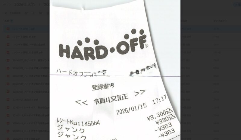 スキャンしたデータや領収書は、勝手に「日付・店名」がファイル名変換される始末。