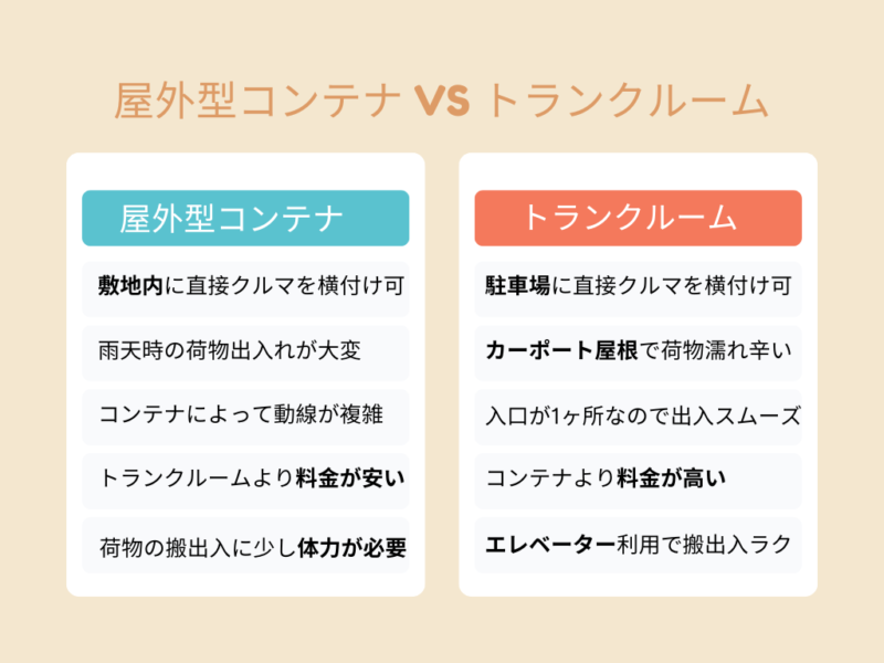 自由に敷地内を出入りできる屋外型コンテナに対して、入口から無関係な人物を遮断できる時点でセキュリティの高さもやはり屋内型トランクルームに軍配。