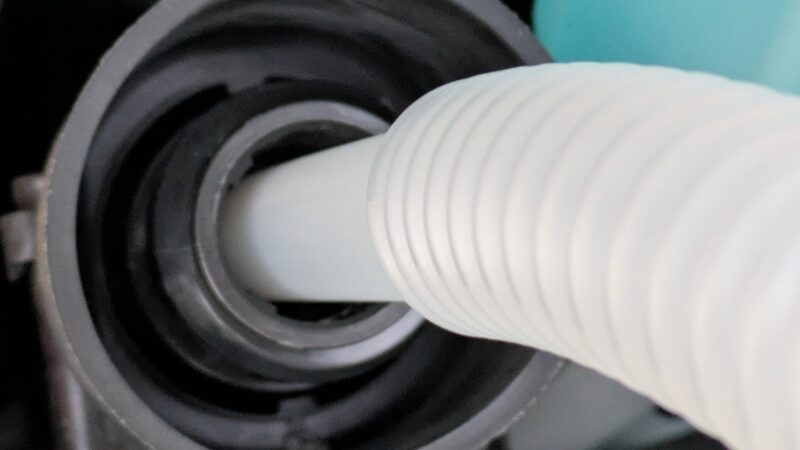 この様子を撮影するために一瞬片手で作業しましたが、アドブルーをこぼして車体に付着したりするといろいろ面倒くさいことになりますので、みなさんは両手でしっかりと補充してください。