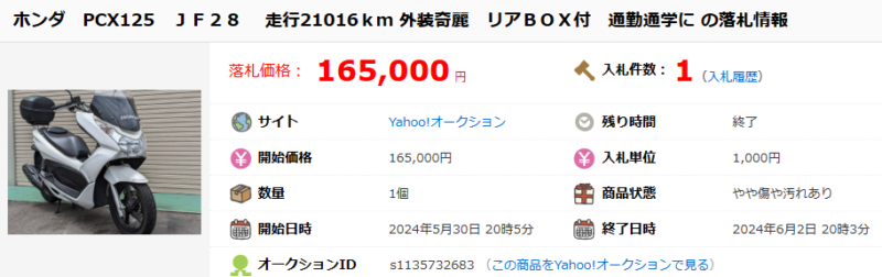 参考までにヤフオクで似たような総走行距離のものが165,000円で落札されてたから、相場より10万安く譲ってもらえたことになります。ぼくは買い物上手。