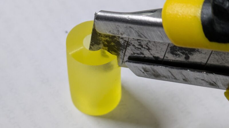 カットできたら軸に差し込みながらはめ込んで、指でくるくる回して空回りしないか確認しましょう。