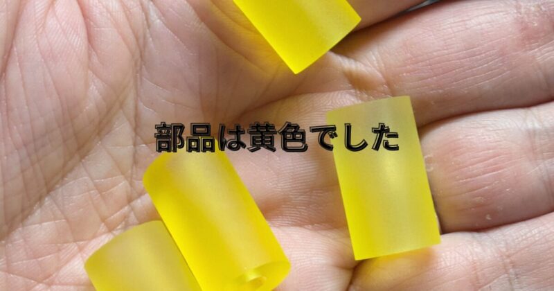 届いた部品の袋を開けると、黄色い半透明のシリコン製ゴムが4個入っていました。